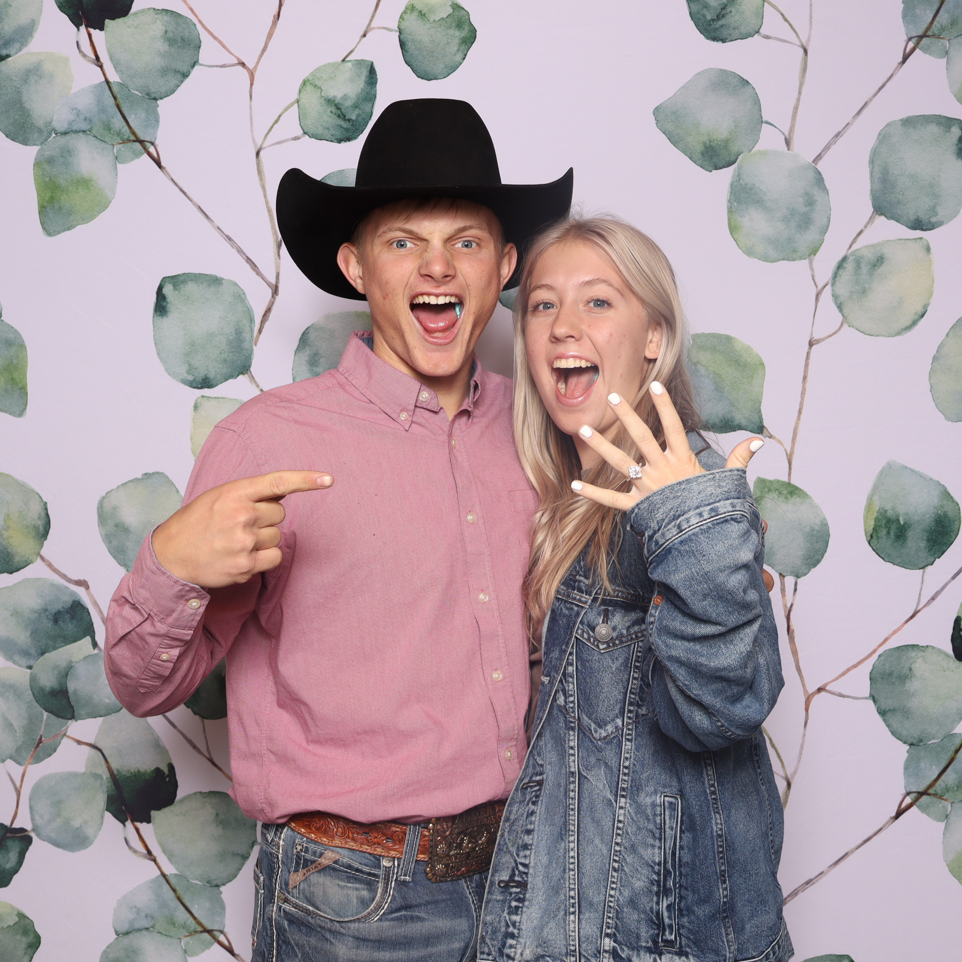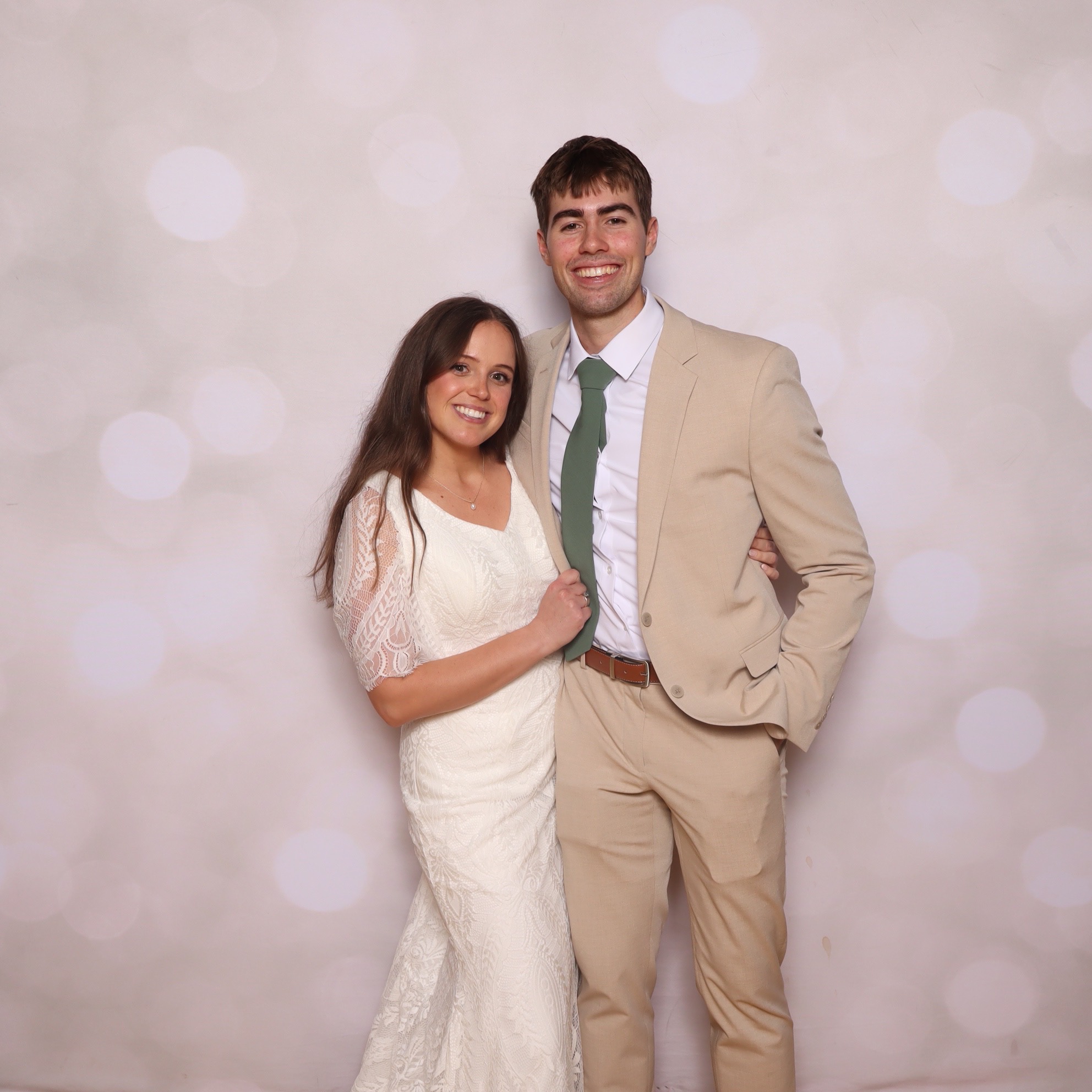 A timeless open-air booth with studio lighting, custom backdrop, and instant prints in hand.